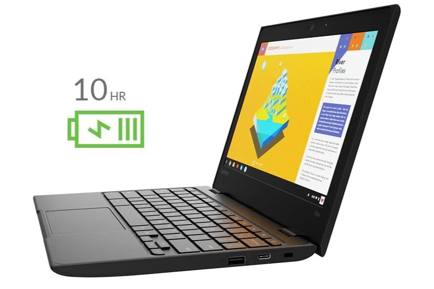 With up to 10 hours of battery life, the 100e Chromebook lasts an entire school day and more. Students can work a full day, bring it home, plug it in, and let it recharge overnight for the next day’s classes.