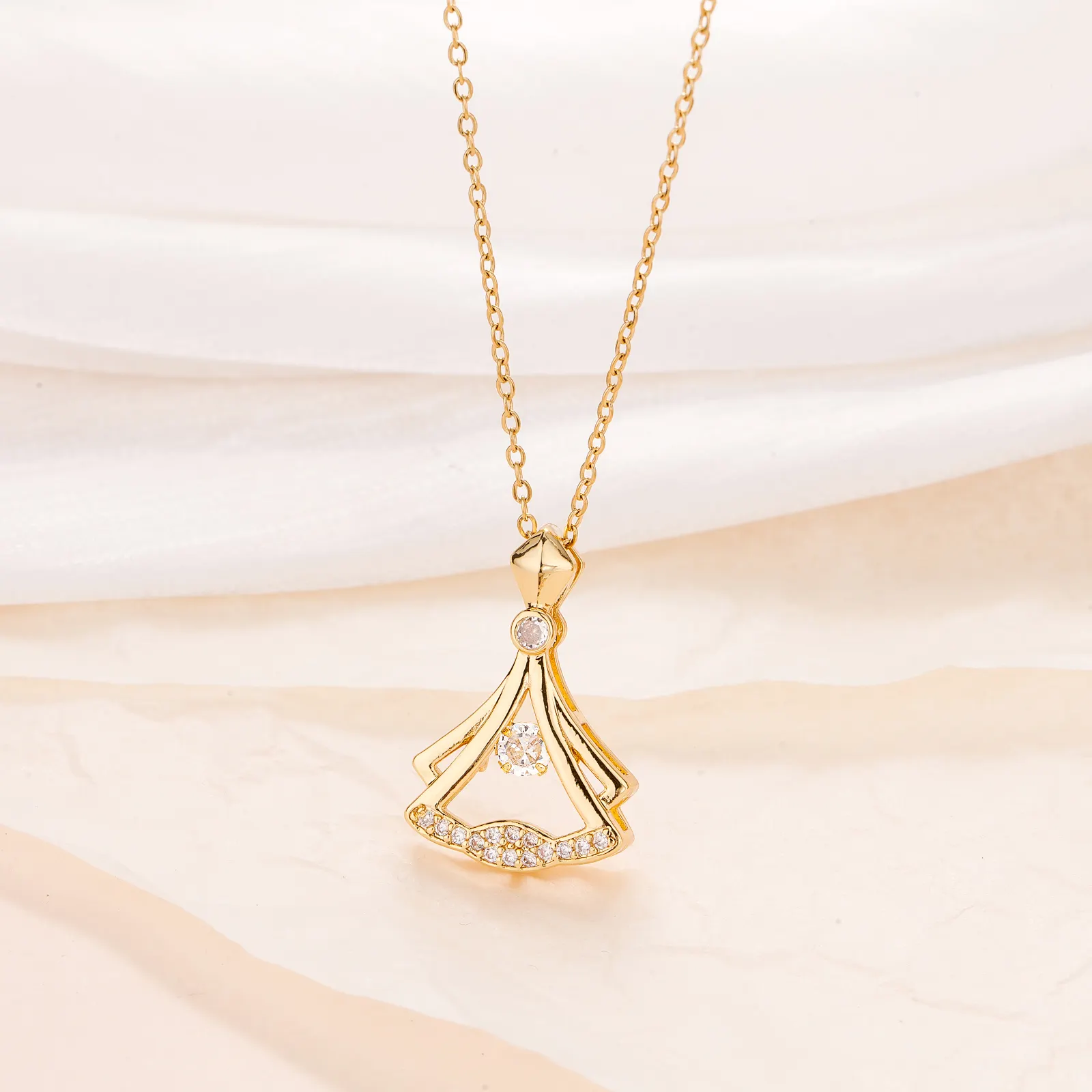 Our 24K Gold Plated Fan Necklace is crafted for elegance and charm. With a unique fan-shaped pendant and a luxurious 24K gold plating, this piece is designed to make any outfit shine.