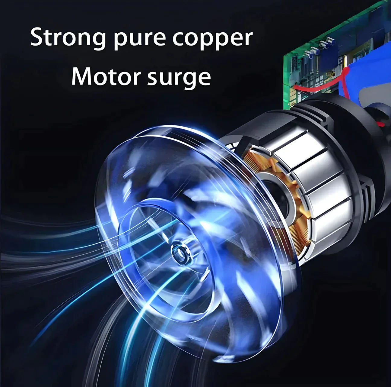 Compact design ,lightweight and hand-held,but strong suction and blowing dust buster.Output power120W super power motor provides strong suction up to 6000pa,Wet/Dry vacuum, lightweight-only 400g.
